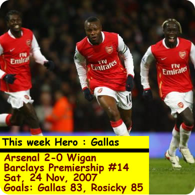 さて、毎回気になる今シーズンの右サイドですが、なかなか良くなってきています。エブエのボールキープは以前のように戻ってきましたし、サニャを信頼し始めたのかちゃんとサニャにもパスが行くようになりました。それから、サニャのクロスは精度が良いみたいですね。クリシーの絶望的なクロスの精度とは雲泥の差。マンチェスター戦、リバプール戦では攻撃はいつも左からというような試合展開でしたが、今回は、アデバヨールもパス交換に加わってきてうまく右サイドの攻撃を形成できていたと思います。前半に完全にウィガンの守備を崩せなかったのは残念でしたが、良い傾向でしょう。